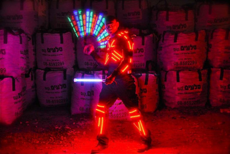 דמות מטורפת לבושה בחליפתLEDבעיצוב אישי מיוחדת ומהפנטת
